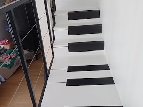 Ma dernière création avant les vacances: un escalier de pianiste intégrant aussi la niche du chien, des placards coulissants pour manteaux et papier et un…